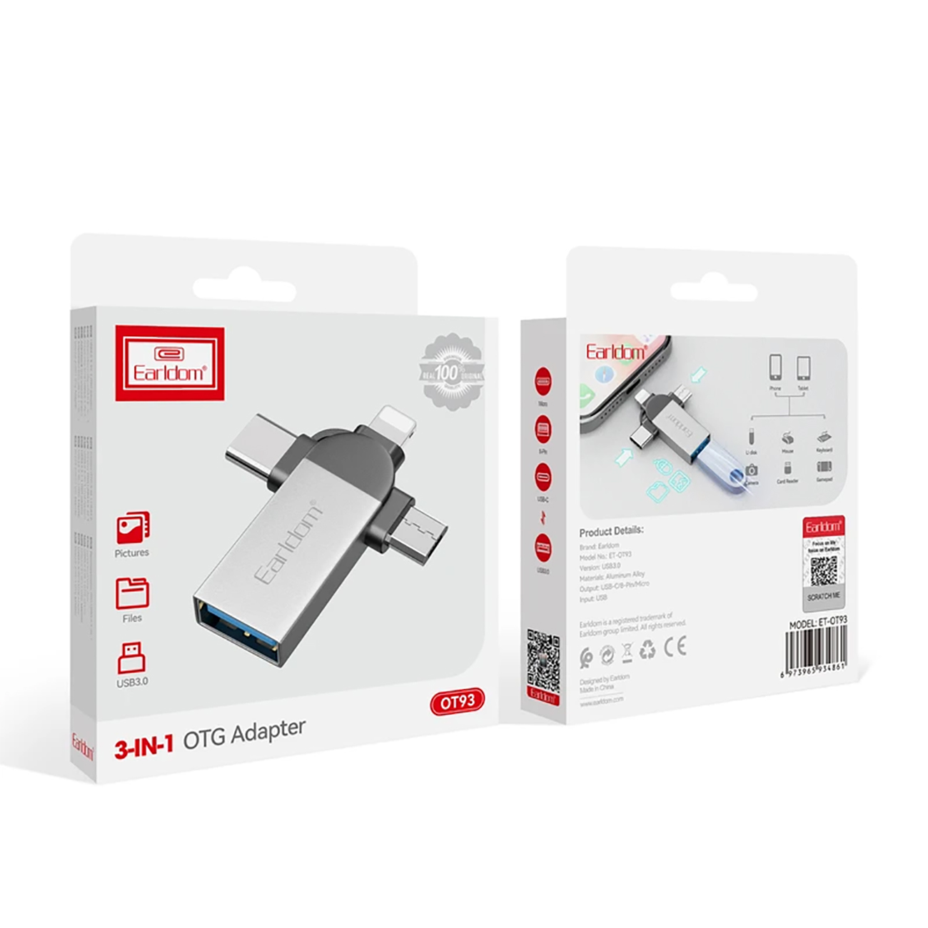 مبدل او تی جی یو اس بی به تایپ سی، لایتنینگ و میکرو یو اس بی ارلدام OT93