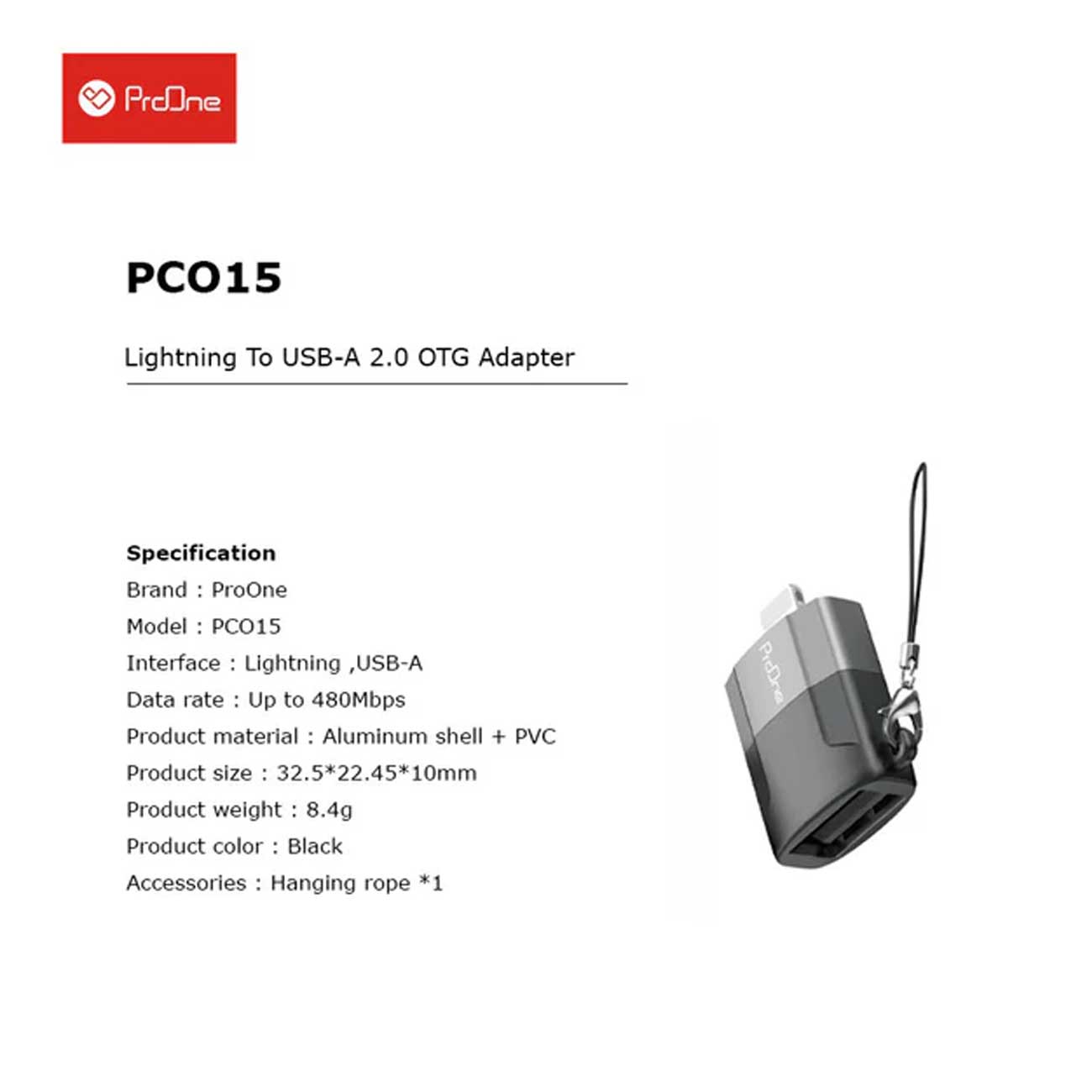 ProOne PCO15 Lightning To USB-A OTG Adapter