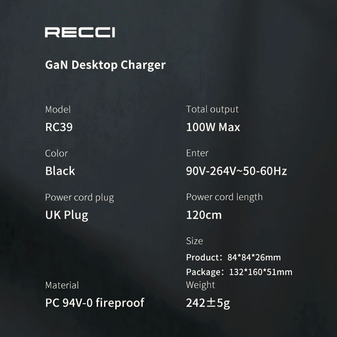 Recci GaN Desktop Charger 100W 4in1 ultra-fast office charger