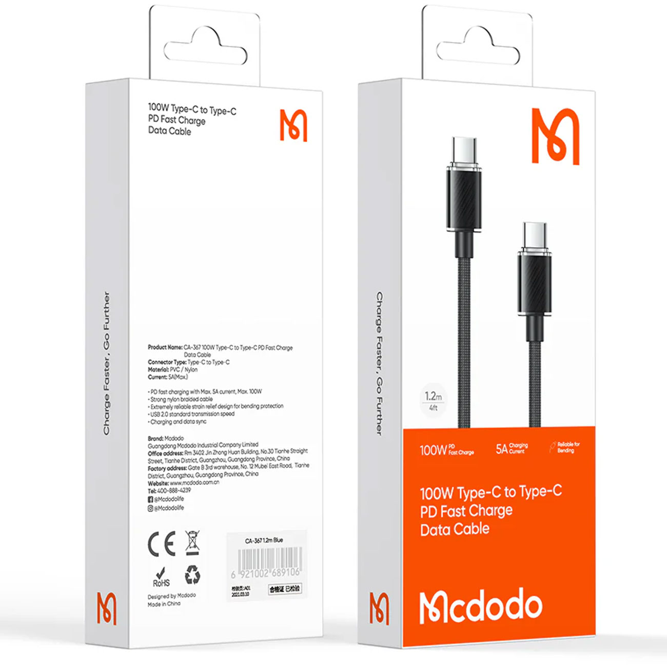 کابل سوپر فست شارژ تایپسی به تایپسی 100 وات 1.2 متری مک دودو CA-367