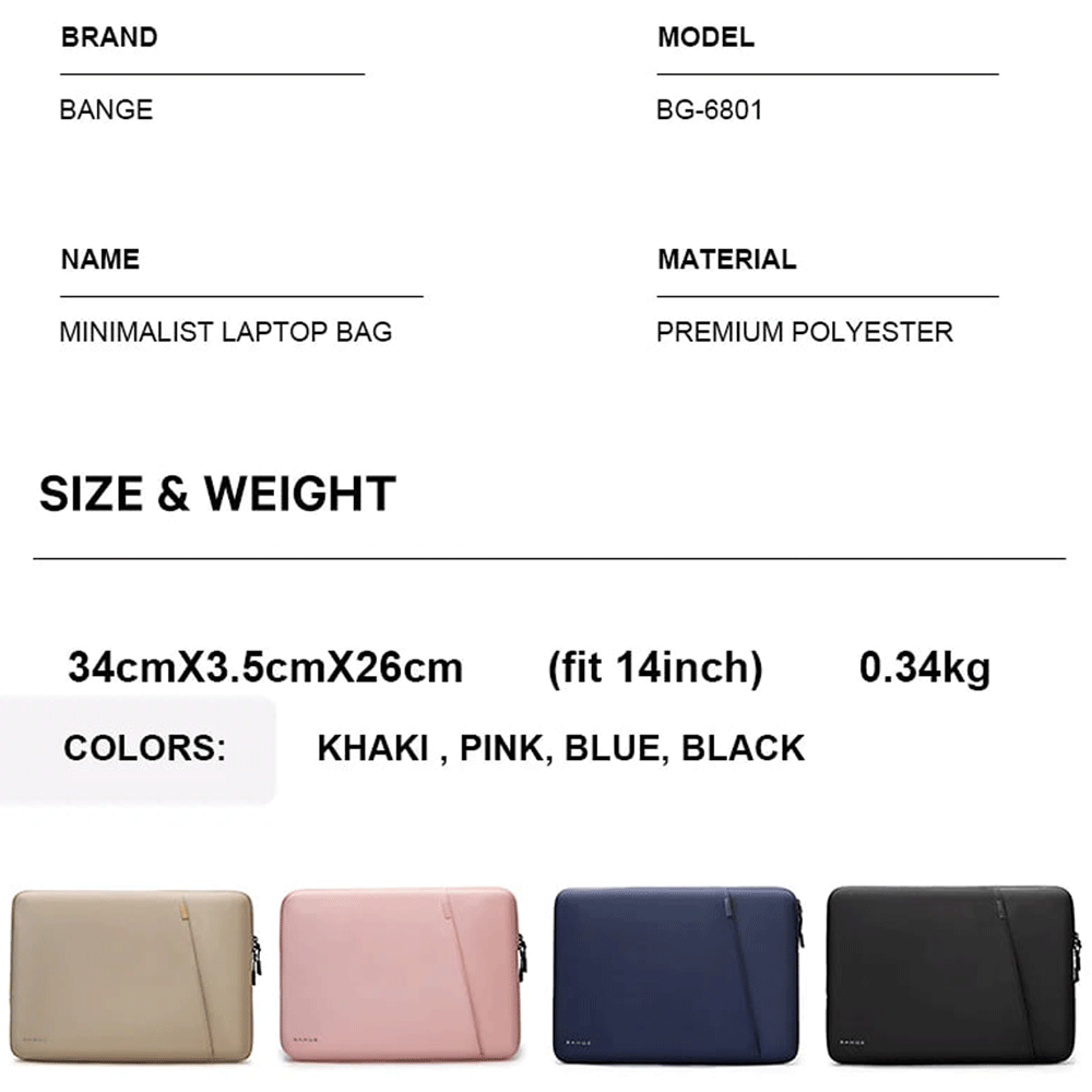 BANGE 6801 Laptop Bag Portable Laptop Case Zip Soft Protective Sleeve (14")