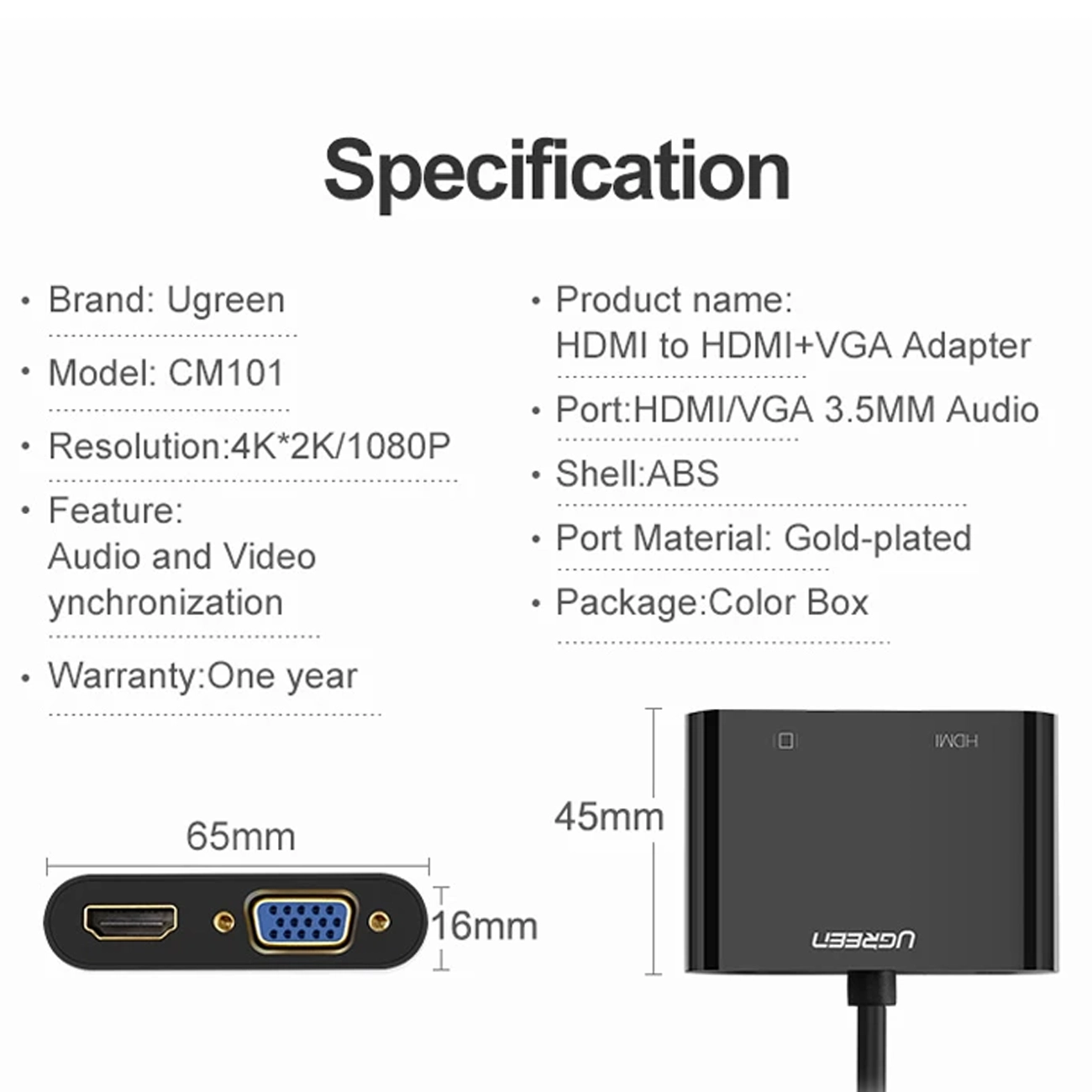 Ugreen 40744 Hdmi To Vga + Hdmi Converter Cm101 10040744