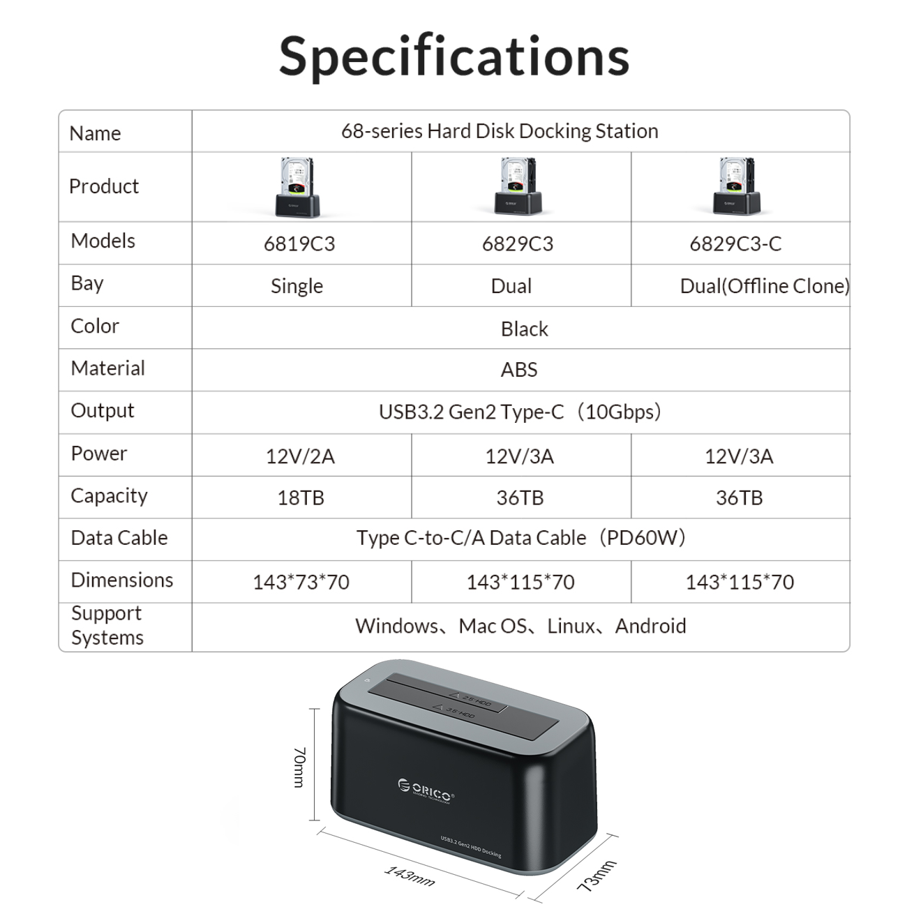 ORICO 2.5"/3.5" HDD/SSD Single Bay Dock 6819C3