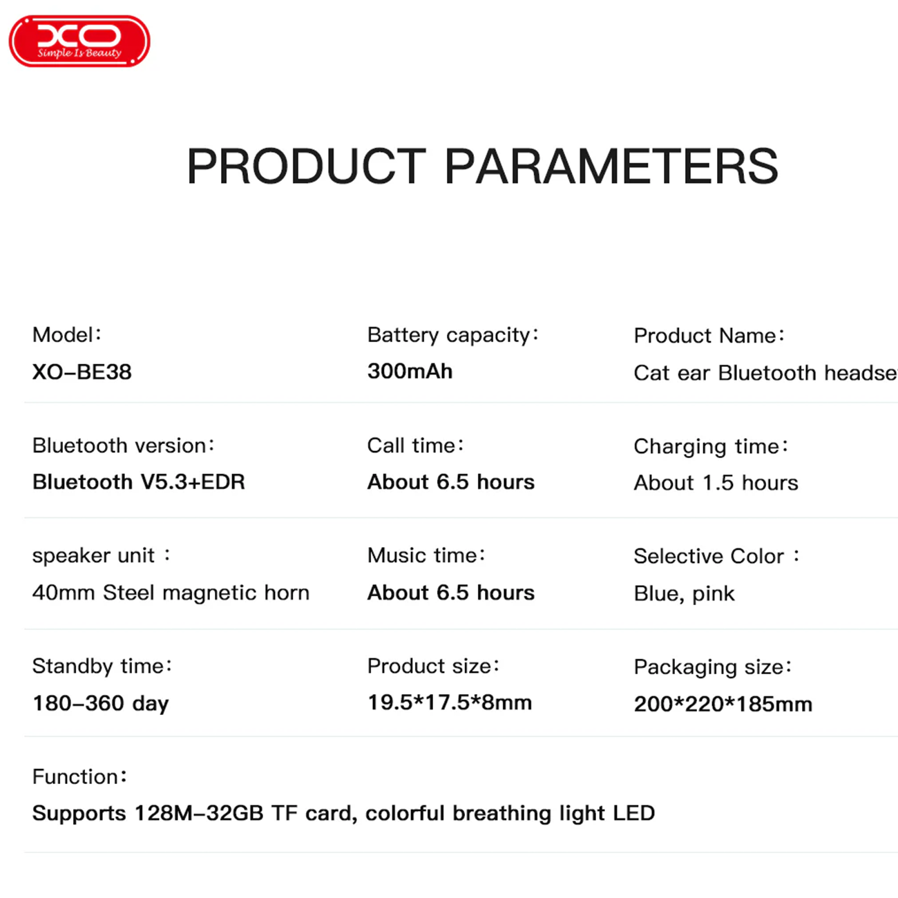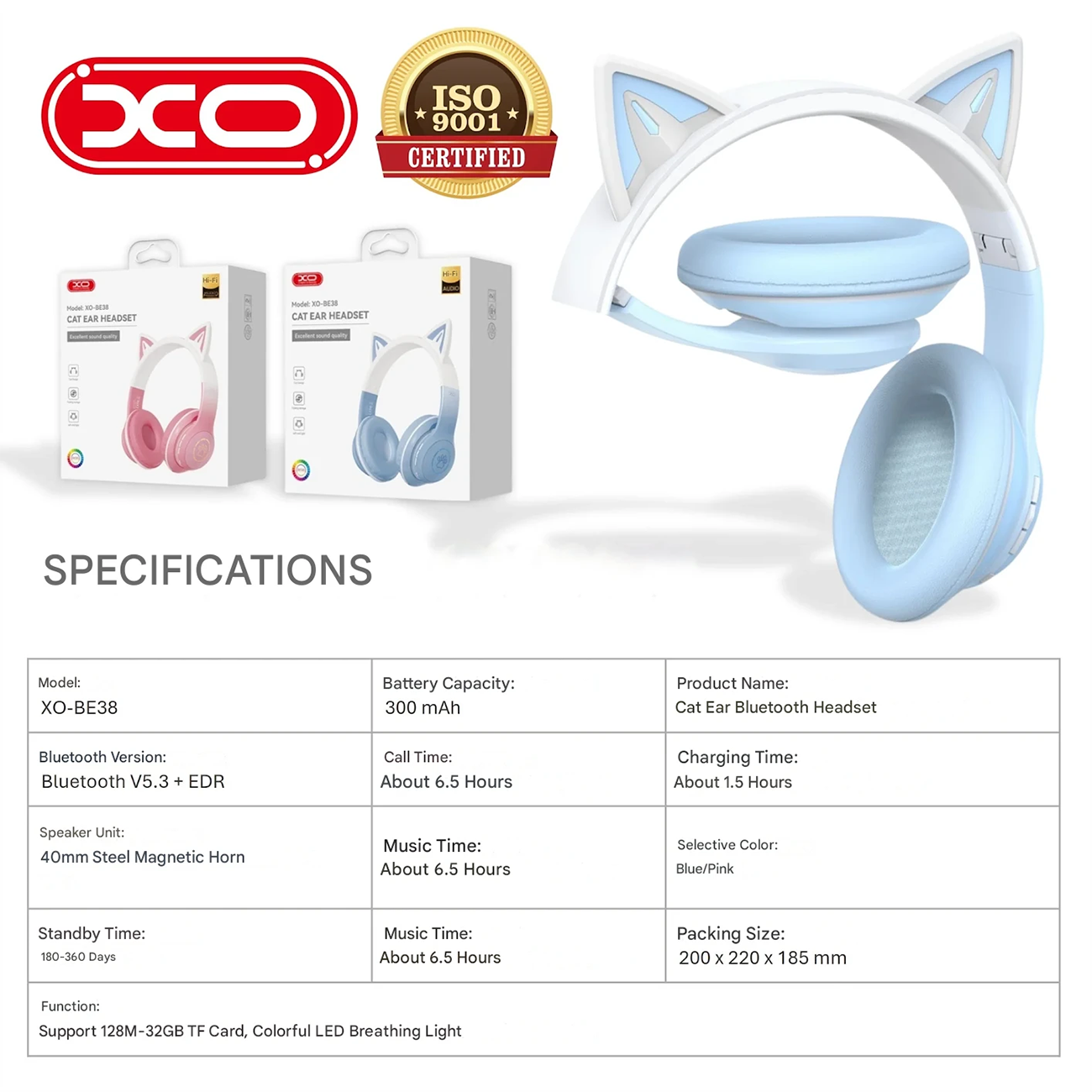 هدفون فانتزی بلوتوثی 5.3 طرح گربه ایکساو BE38