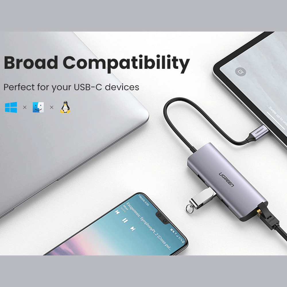 Ugreen CM252 (60718) USB-C to 3xUSB + RJ45 + USB-C Ethernet Multifunction Adapter Hub