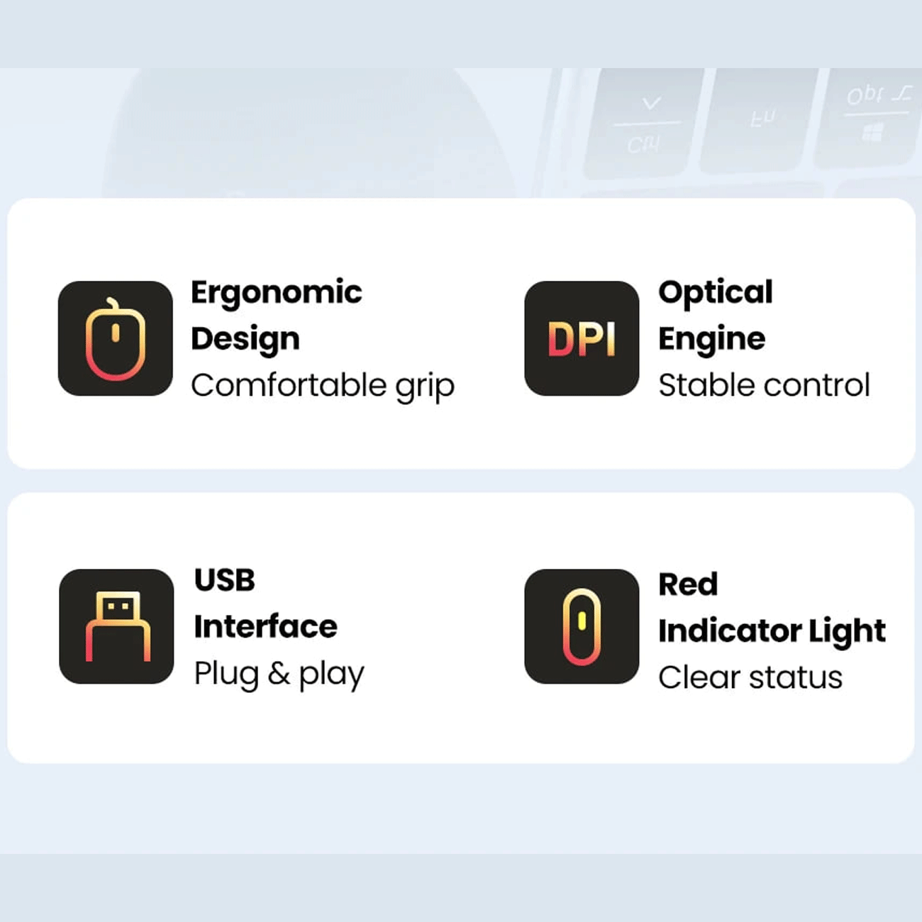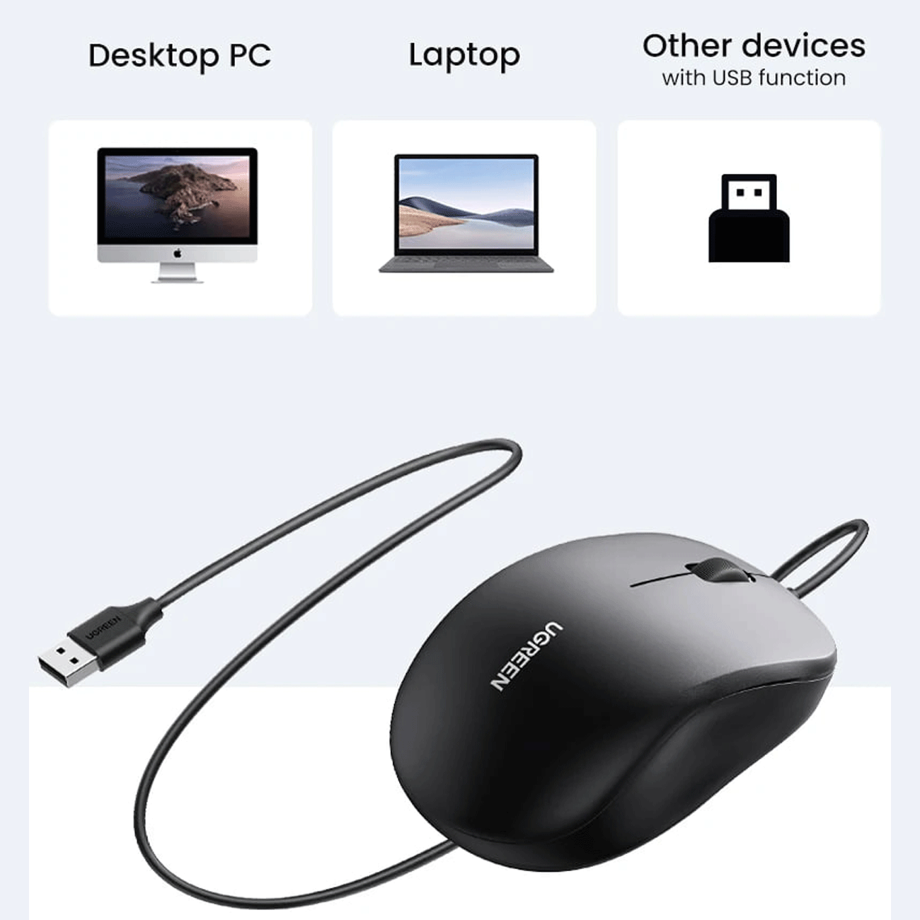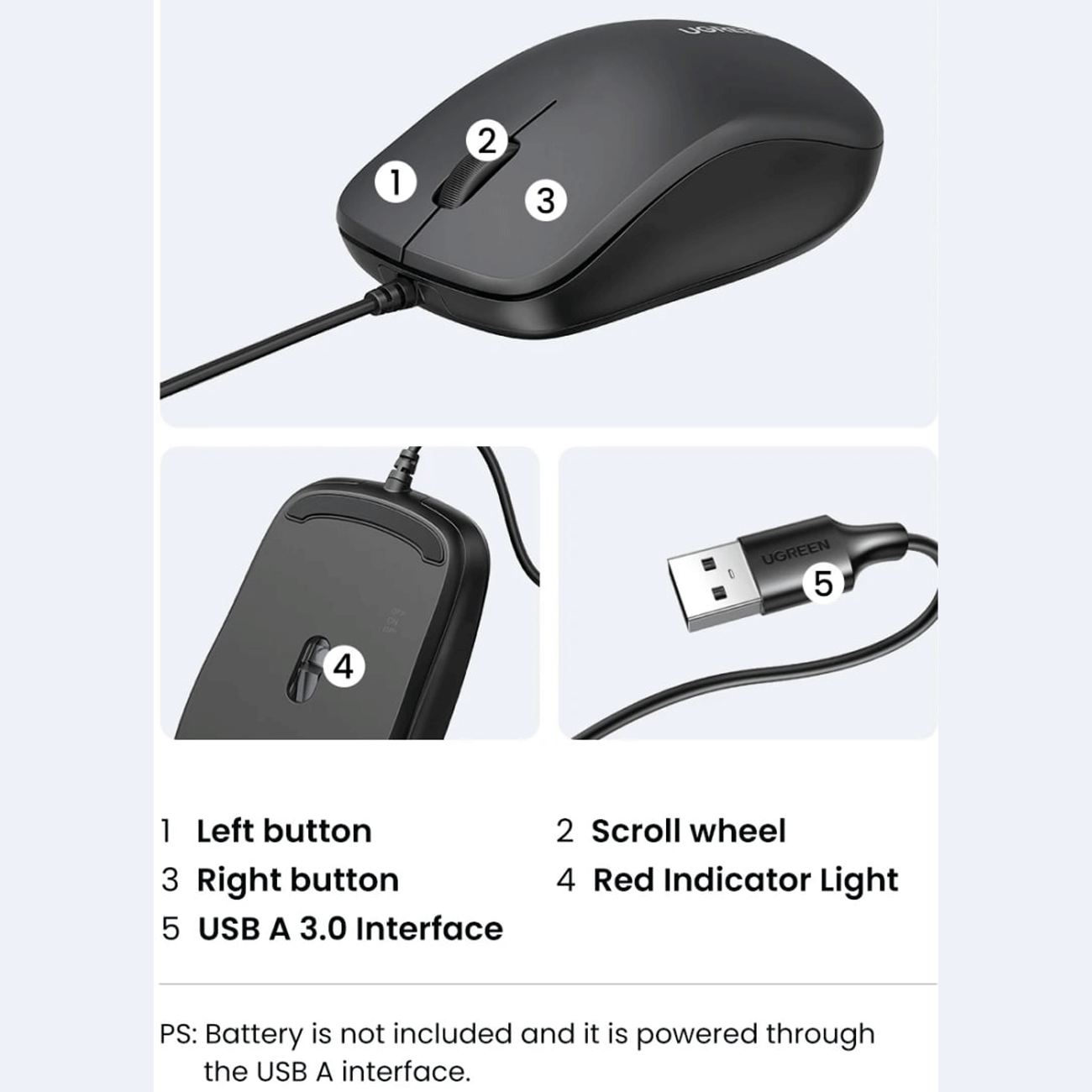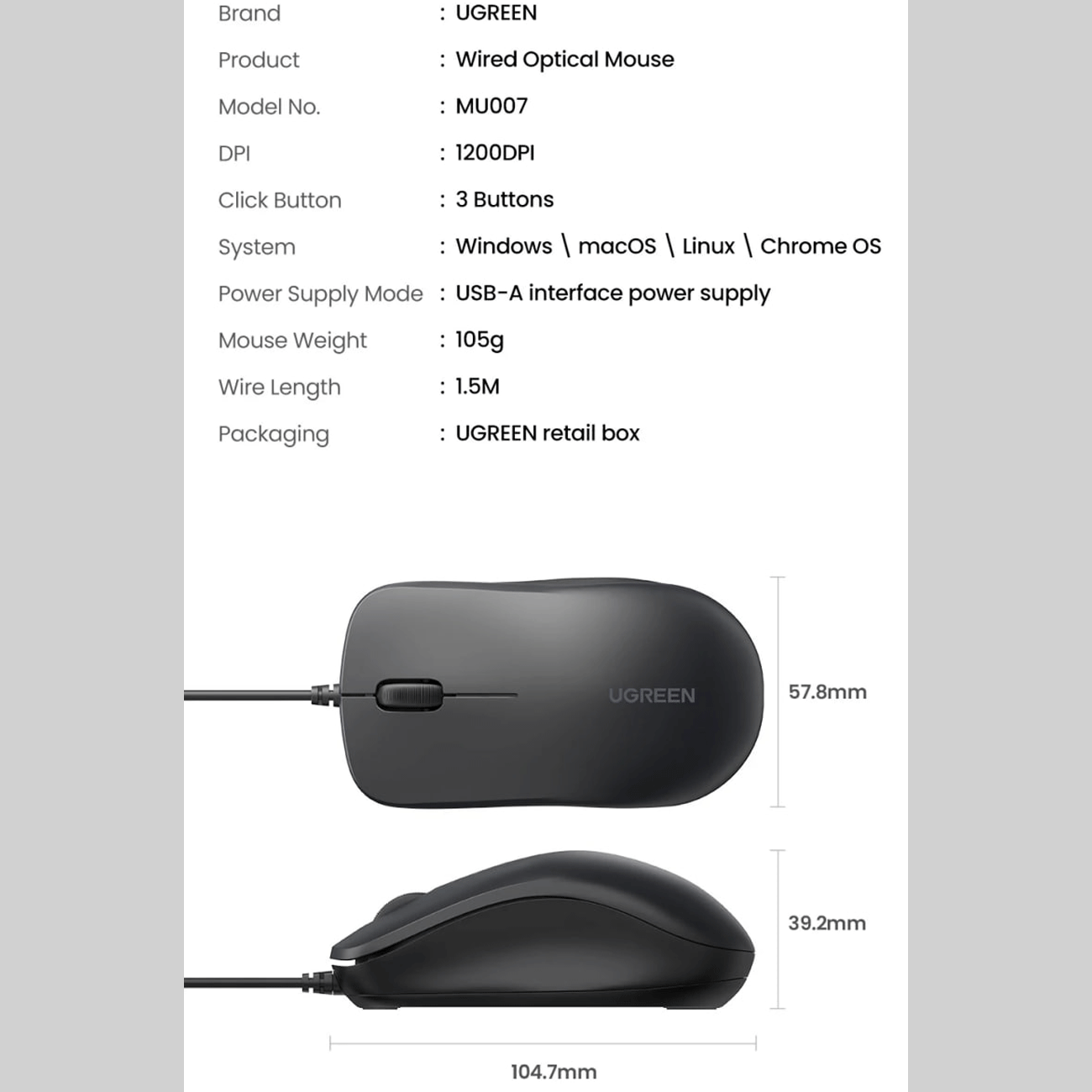 UGREEN USB WIRED MOUSE MU007 3 BUTTONS 1200DPI 1.5M FOR LAPTOP AND PC
