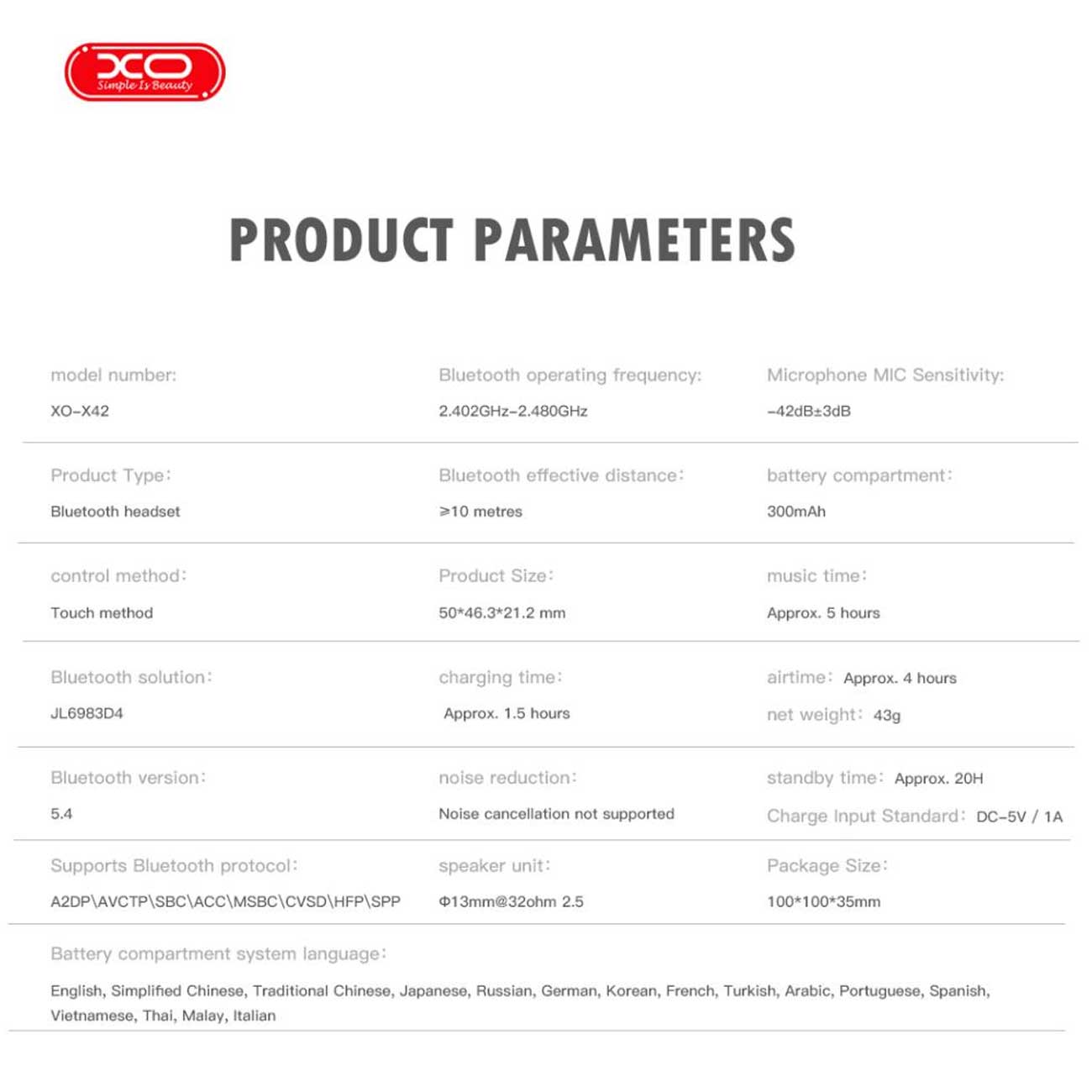 | مشخصات هندزفری بلوتوث | |