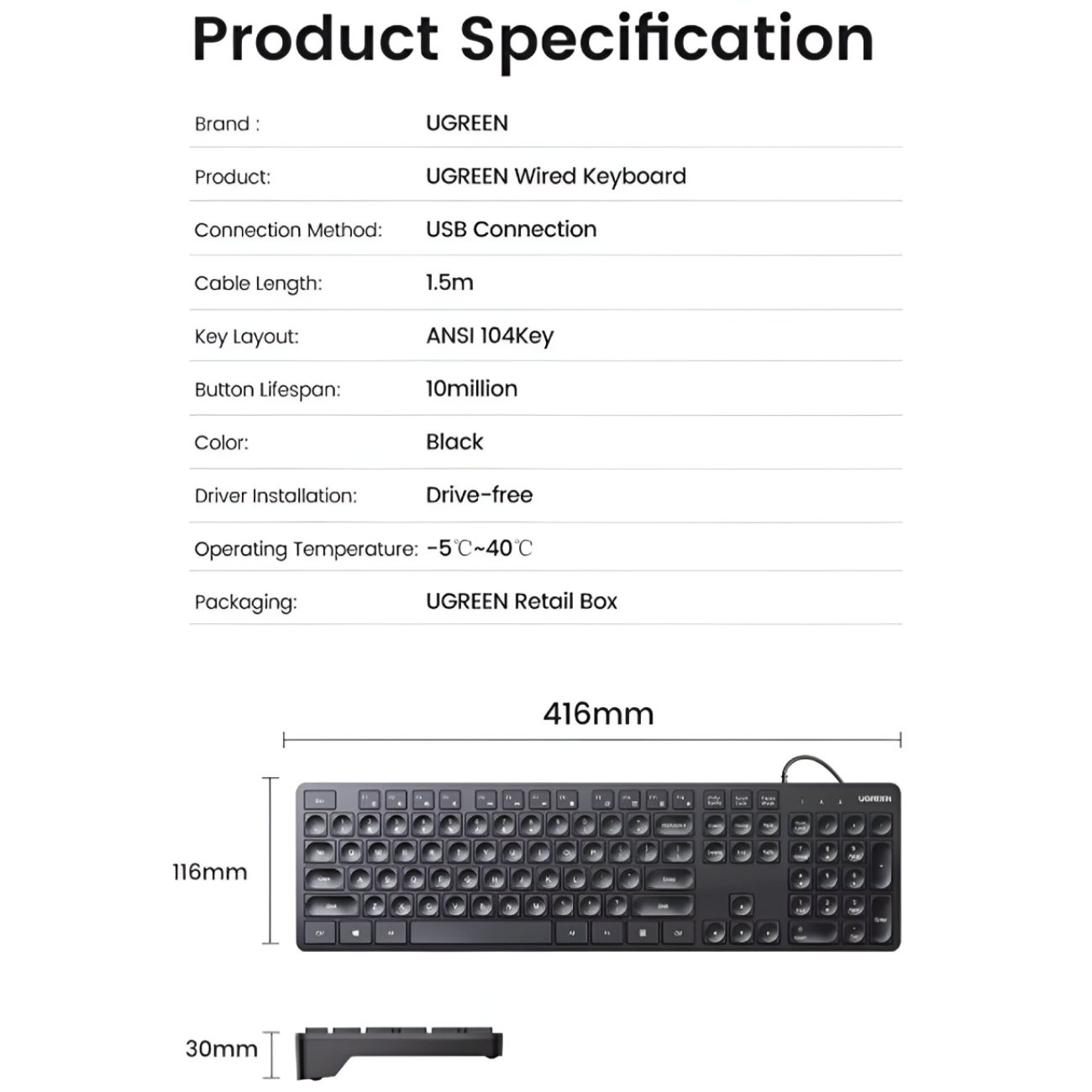 Ugreen KU004 90875 Keyboard Wired 1.5m