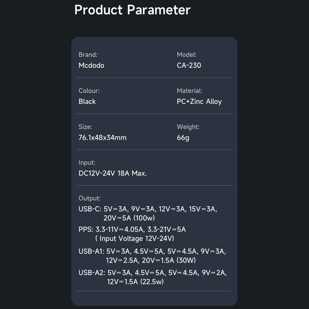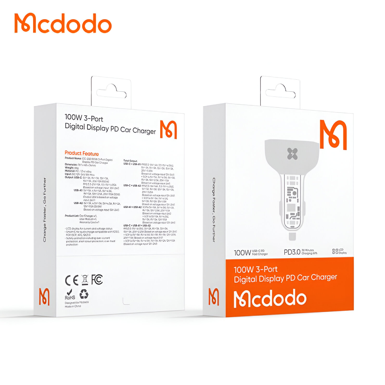 MCDODO CC-2300 Digital Display PD Car Charger 3Port 100w
