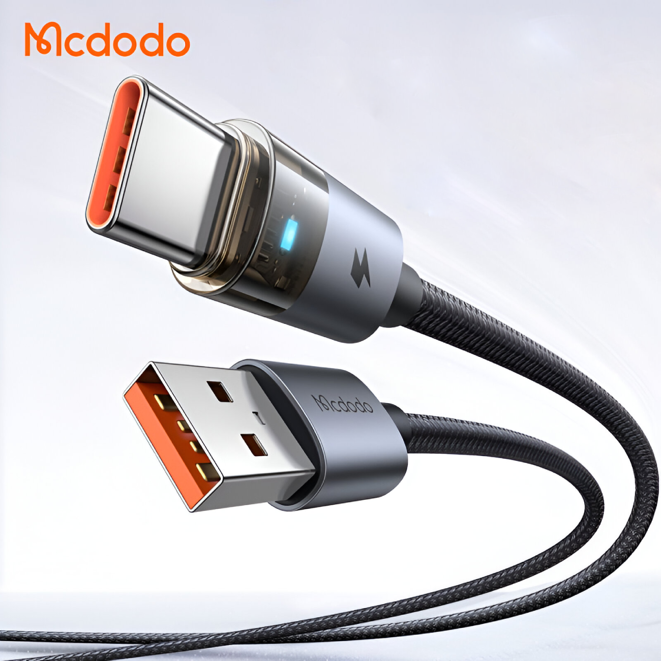 کابل سوپر فست شارژ یو اس بی به تایپ سی شفاف 100 وات 6 آمپر 1.2 متری مک دودو CA-689