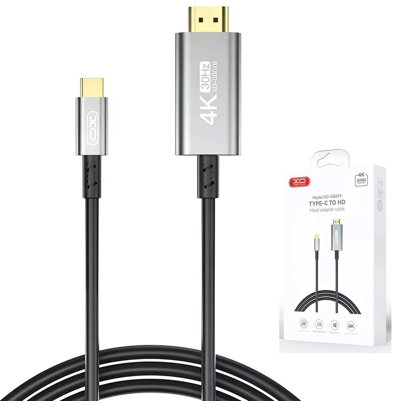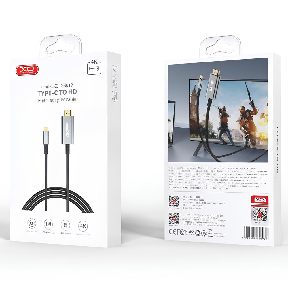 XO GB019 Type-C to HDMI Metal Adapter Cable 1.8M