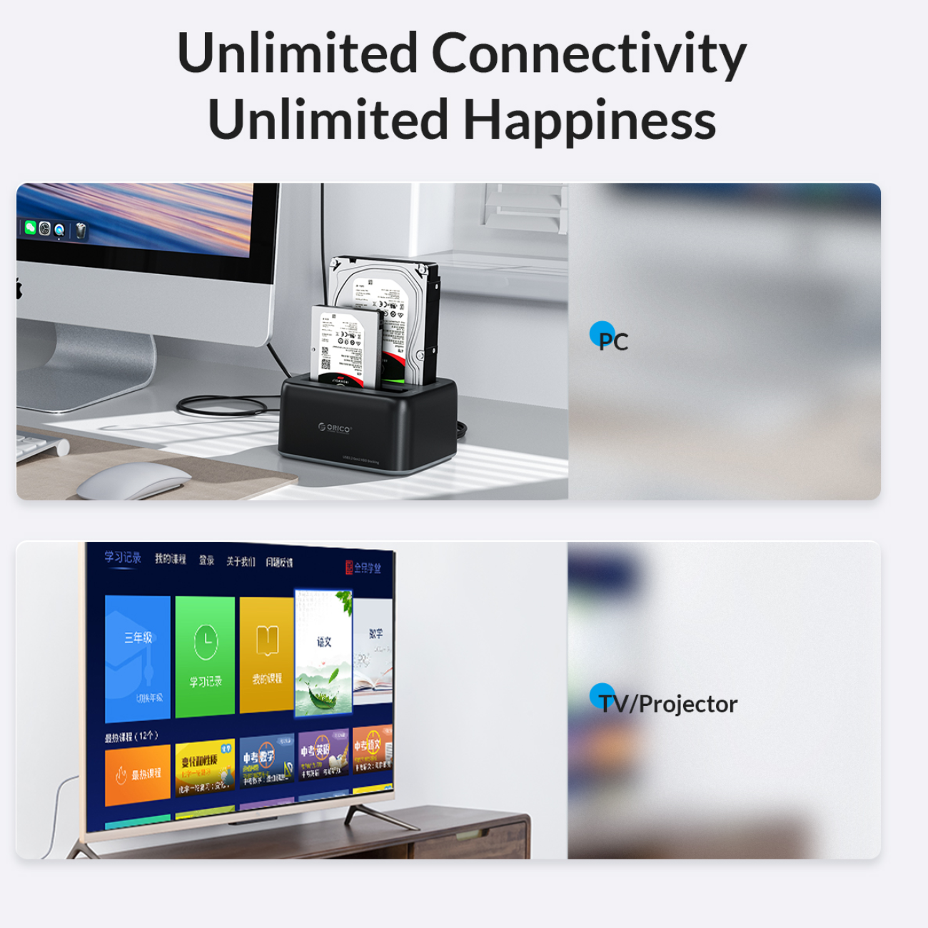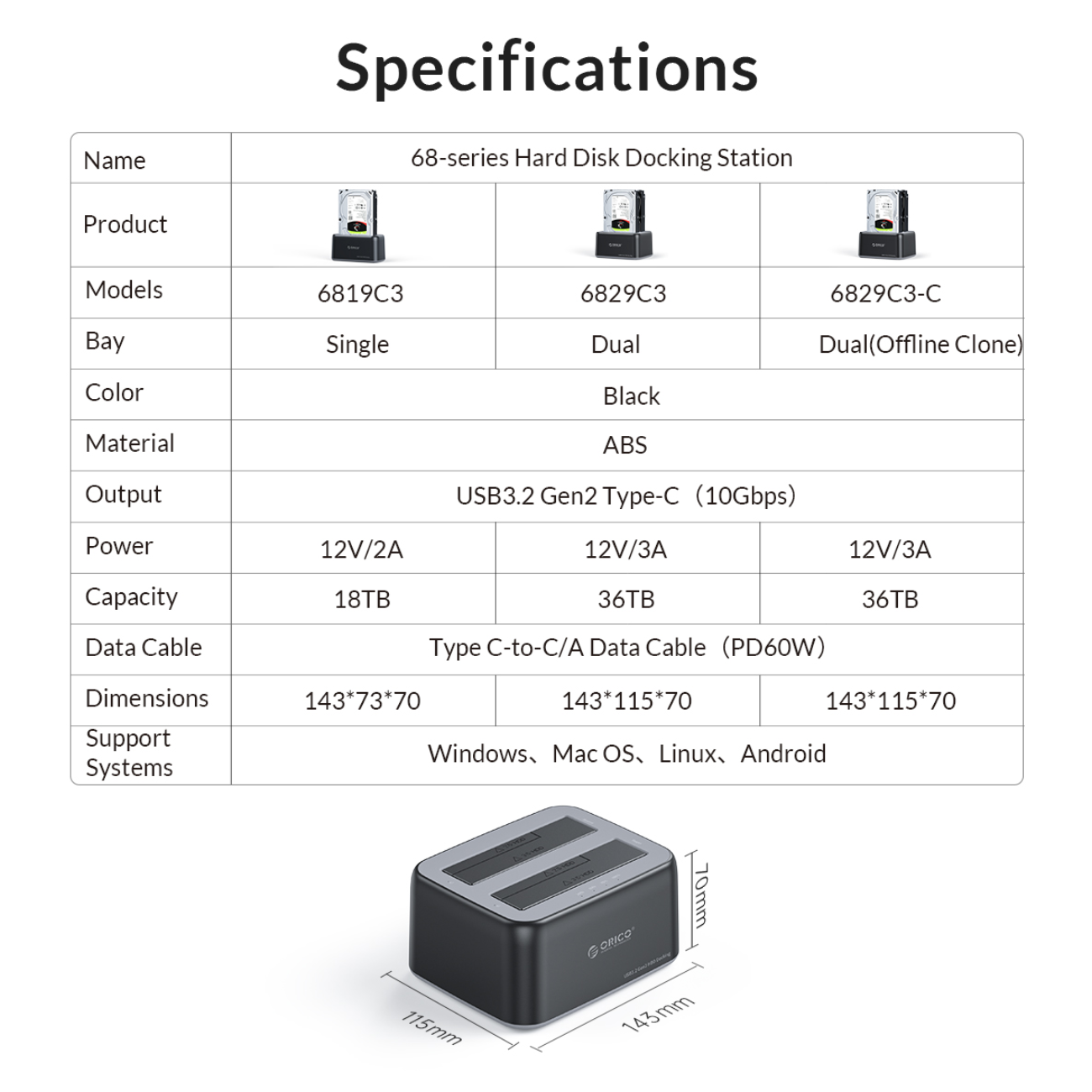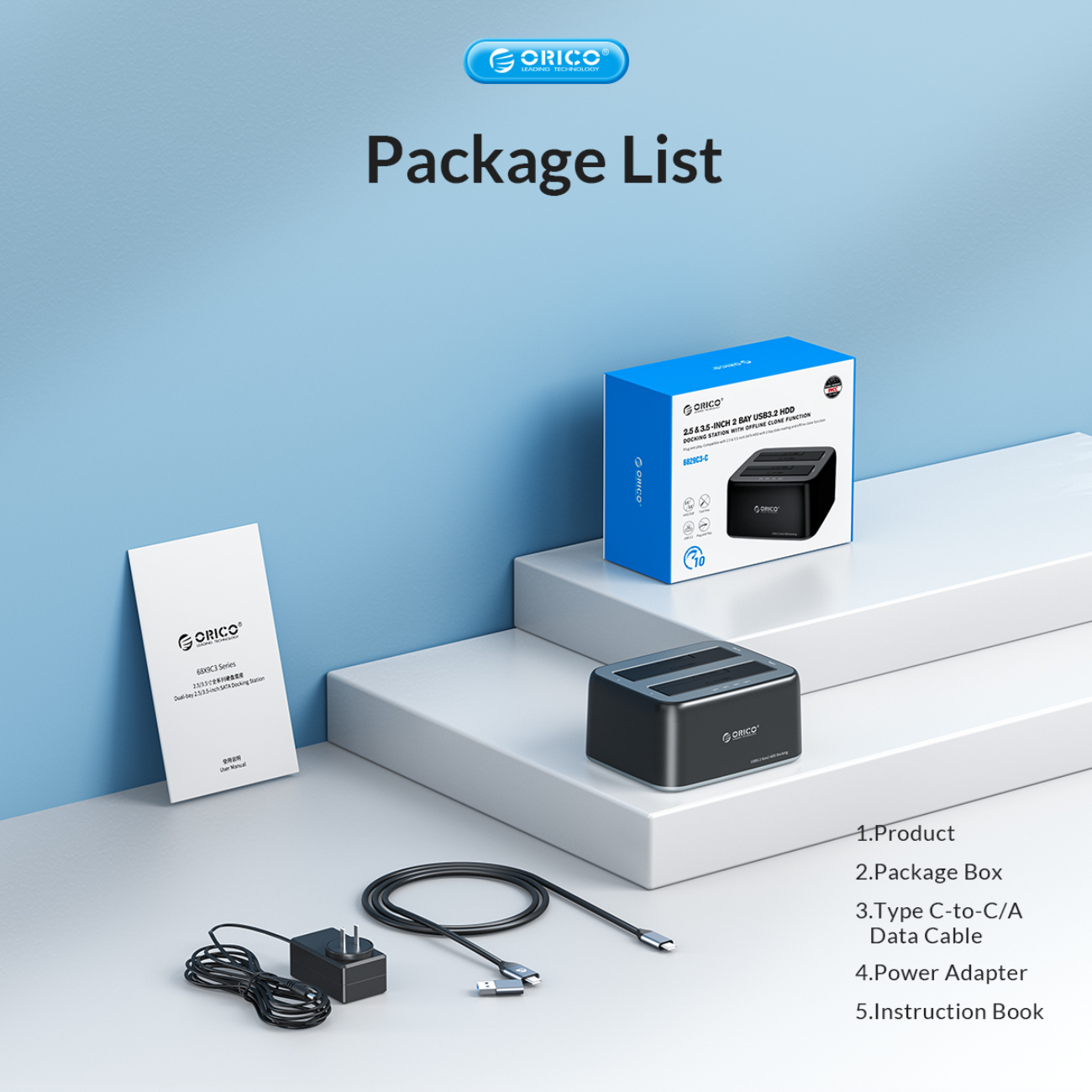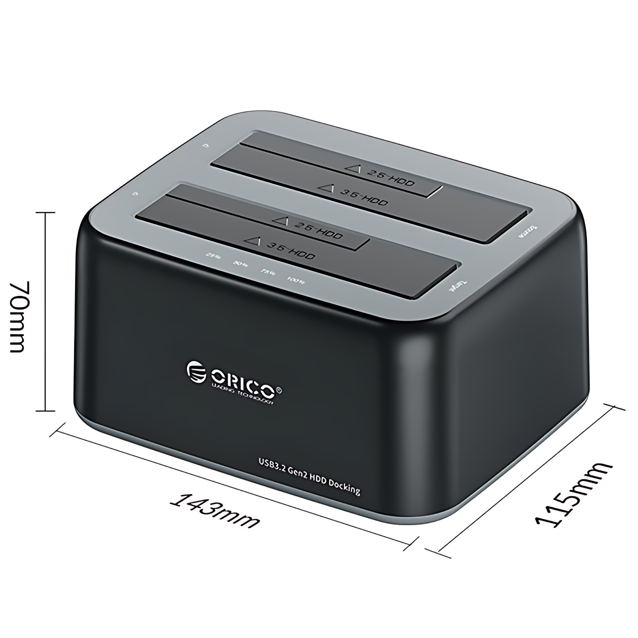 ORICO 2.5"/3.5" SATA HDD/SSD Dual-bay Dock with Offline Clone Function 6829C3-C