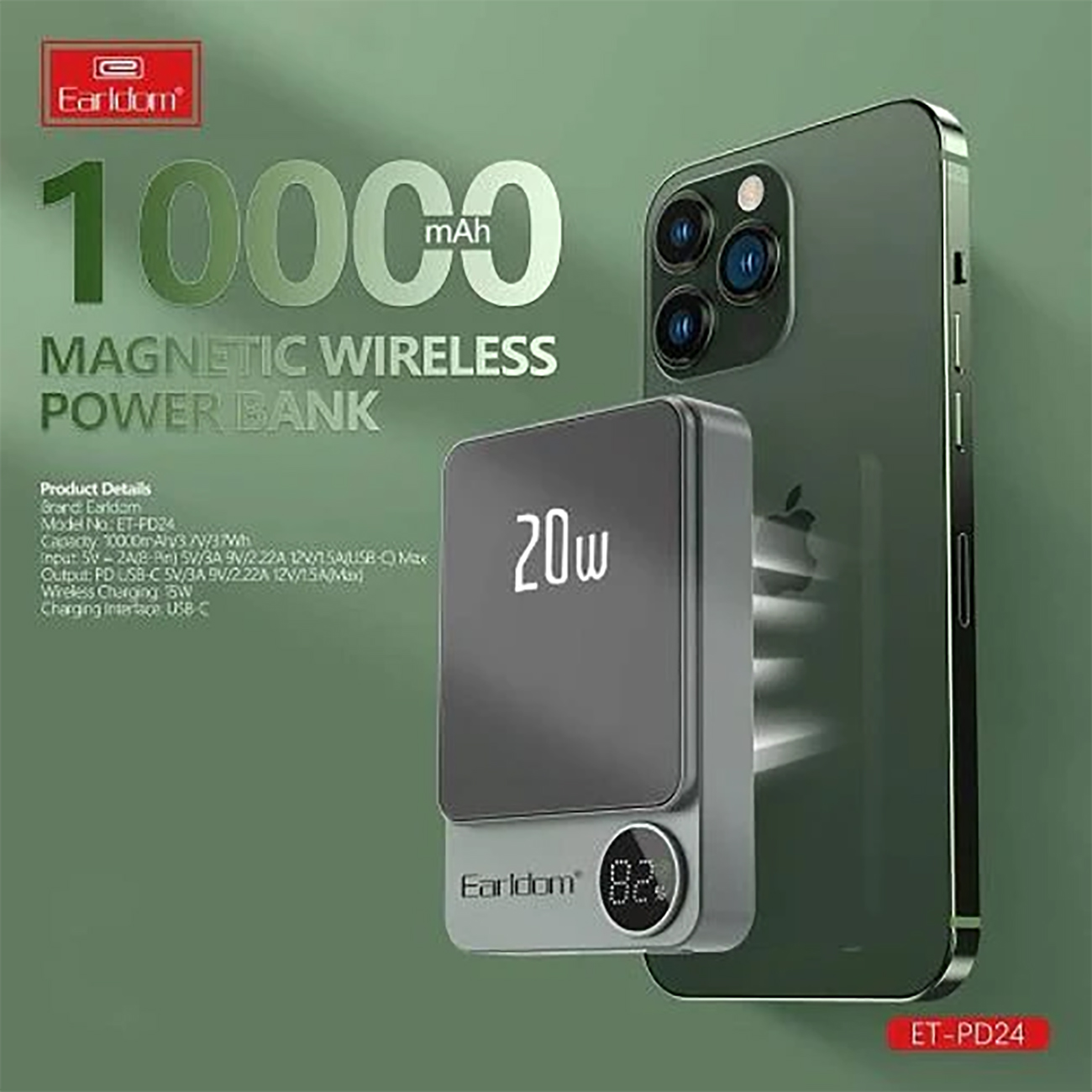 Earldom 10000Mah Wireless Magsafe Power Bank PD34