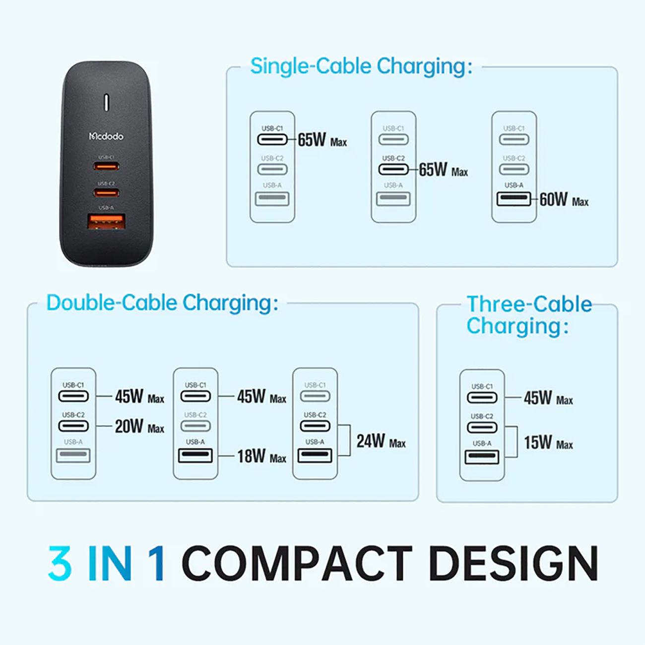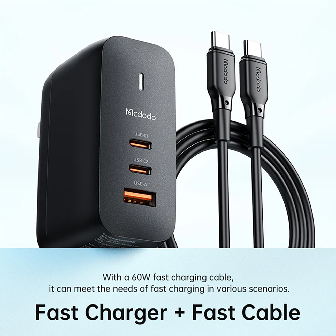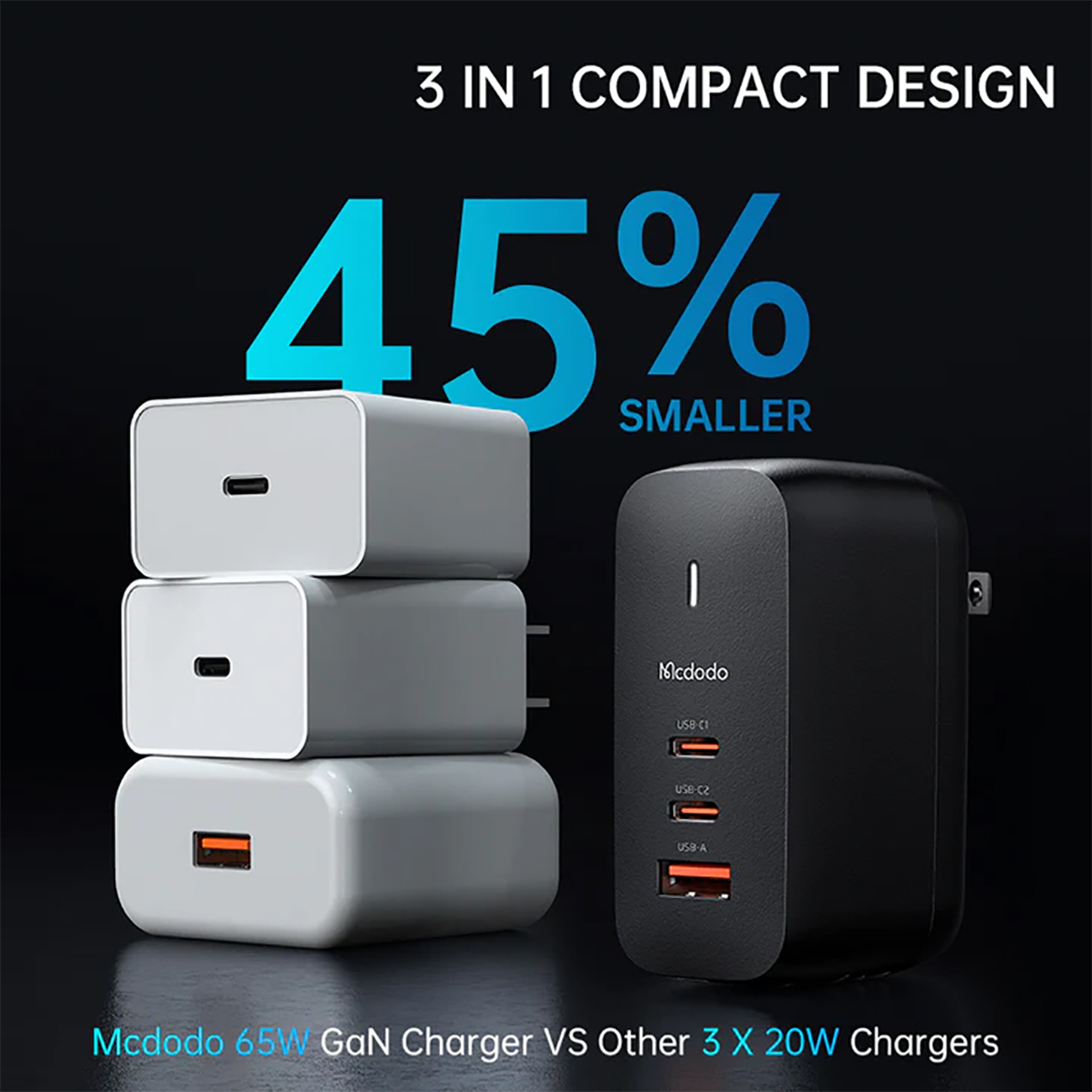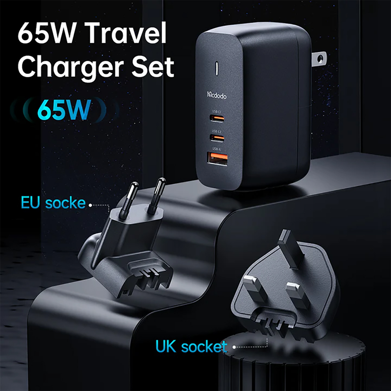 MCDODO CH-8442 Mecha Series GaN 65W Dual Type-C + USB Wall Charger Set (EU/UK/US plug)