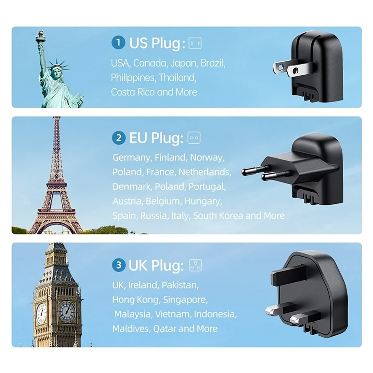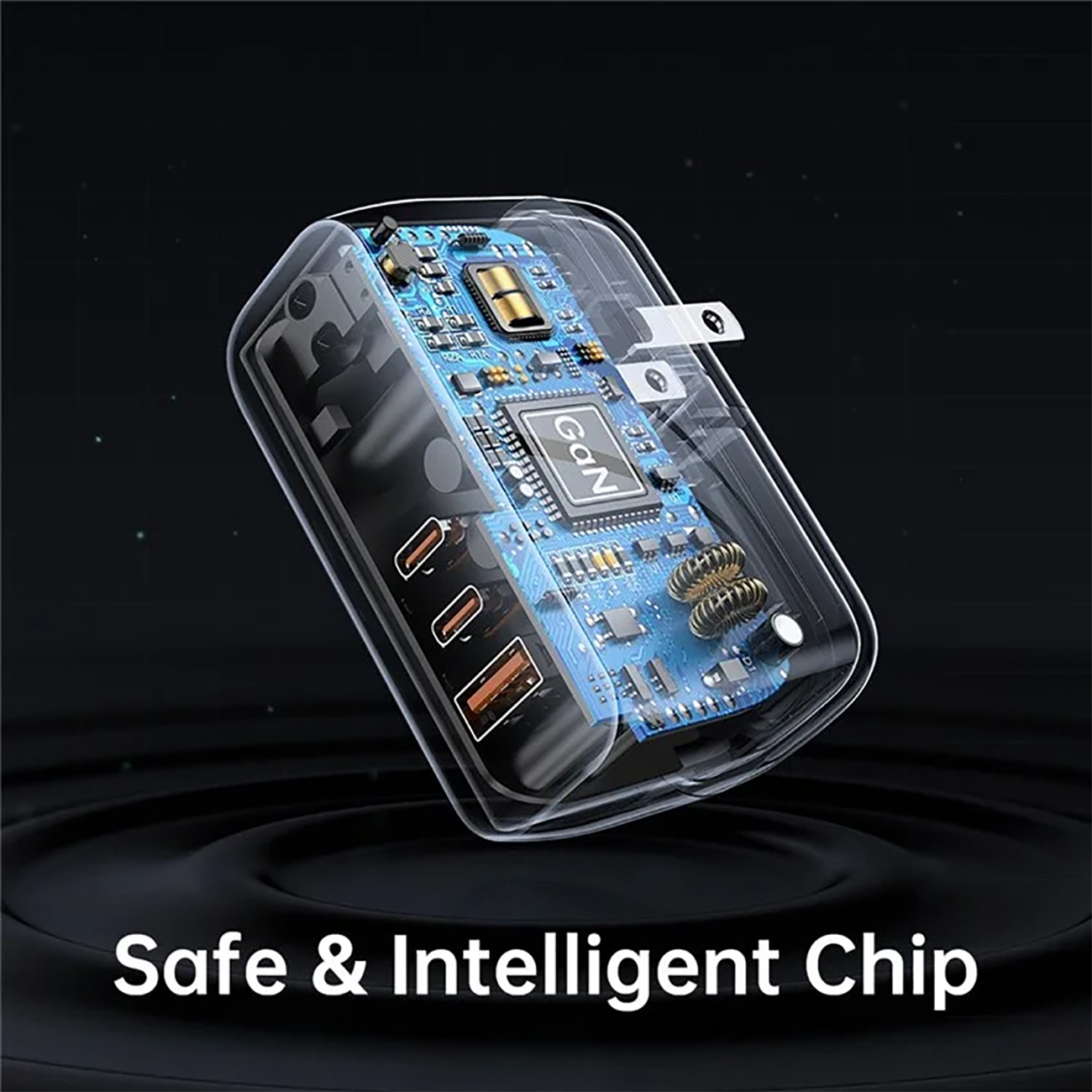 | سایر ویژگیها | دارای دوشاخه پریز اروپایی و پریز انگلیسی جنس پلی کربنات نسوز، GaN پشتیبانی از انواع پروتکلهای شارژ سریع PD2.0/ PD3.0/ QC2.0/ QC3.0/ QC2.0/ SCP/ FCP/ AFC/ BC1.2/ Apple 2.4A |