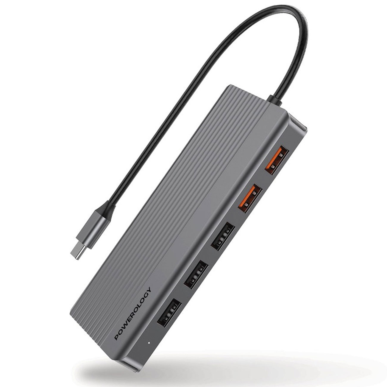 Powerology 12in1 USB-C Hub HDMI Type-C 100W PD Ethernet VGA USB SD MicroSD 3.5AUX P121HBCGY