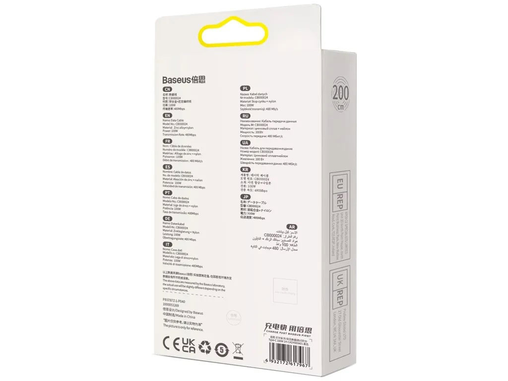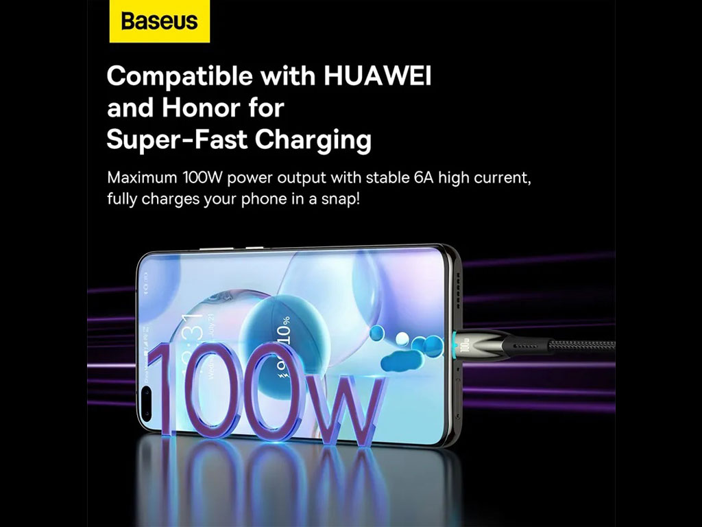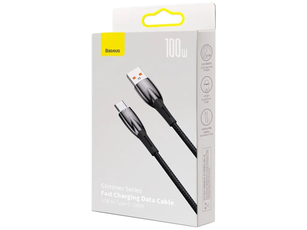 کابل سوپر فست شارژ یو اس بی به تایپ سی 100 وات یک متری بیسوس Baseus Glimmer Type-C Fast Charging Data Cable CADH000401