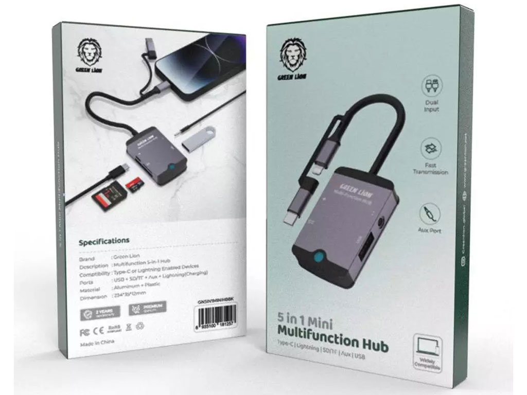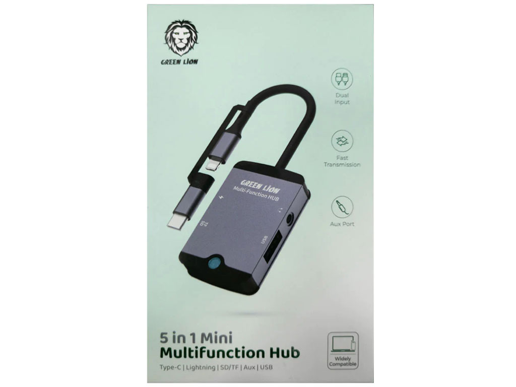 هاب تایپ سی و لایتنینگ مینی 5 درگاه گرین GN5IN1MINIHBBK