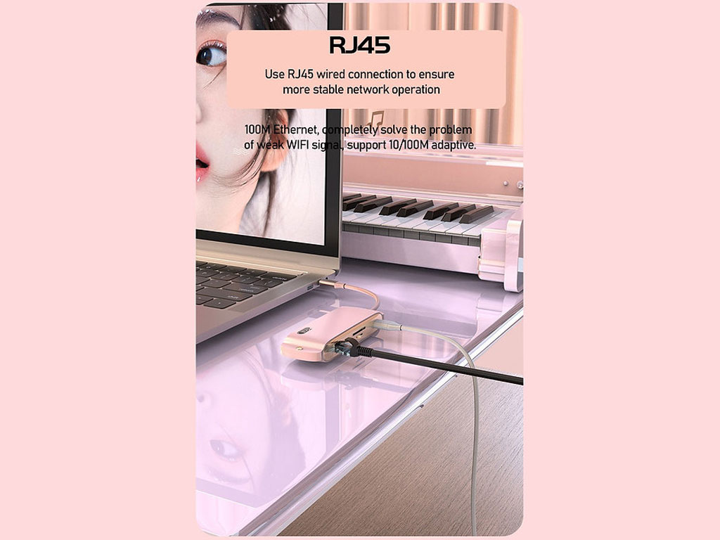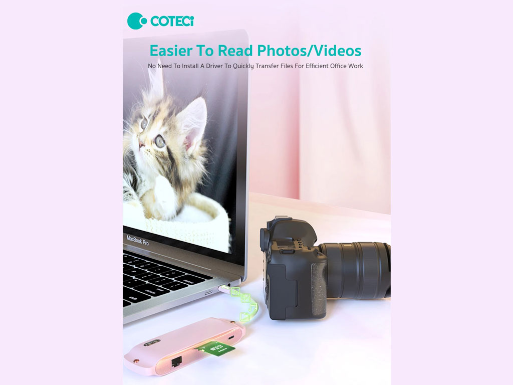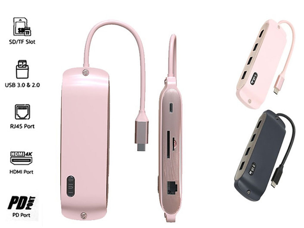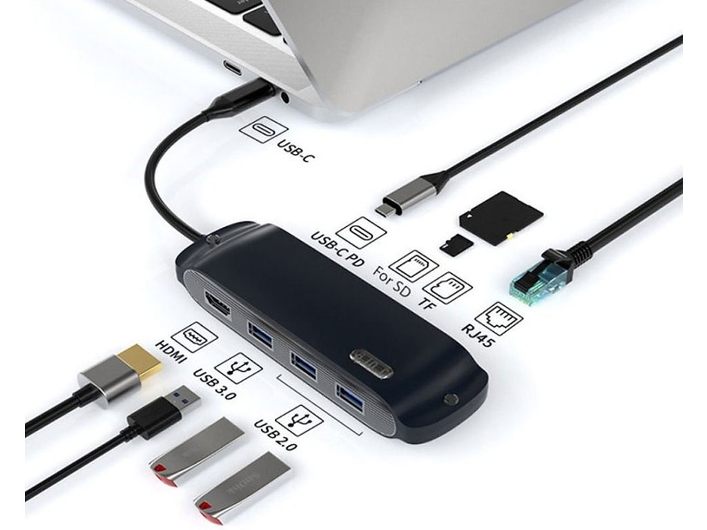 Coteetci HUB Adapter 8 in 1 Type C HDMI RJ45 USB PD Card Reader SD TF 16005