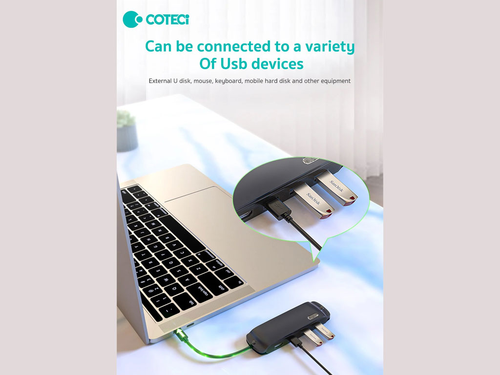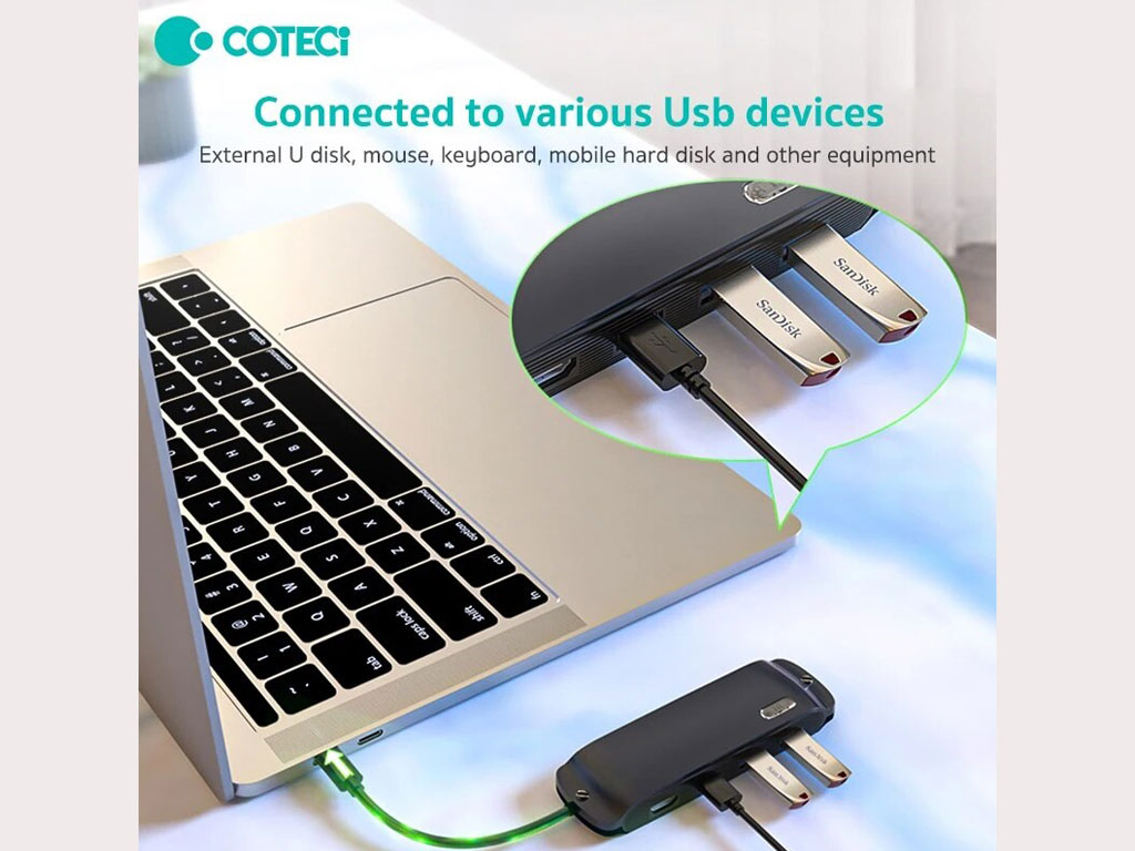 هاب تایپ سی 8 پورت کوتسی Coteci 8in1 USB-C Hub 16005