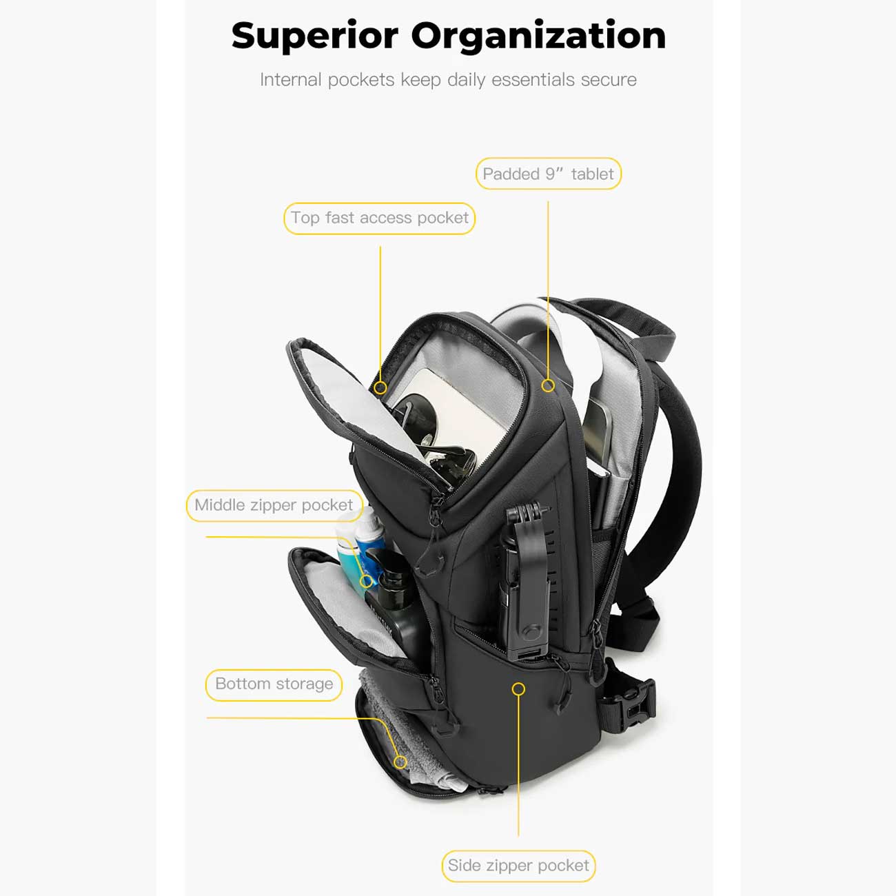 | تعداد جیب | یک جیب اصلی + سه جیب بیرونی + دو جیب جانبی + جیبهای داخلی |