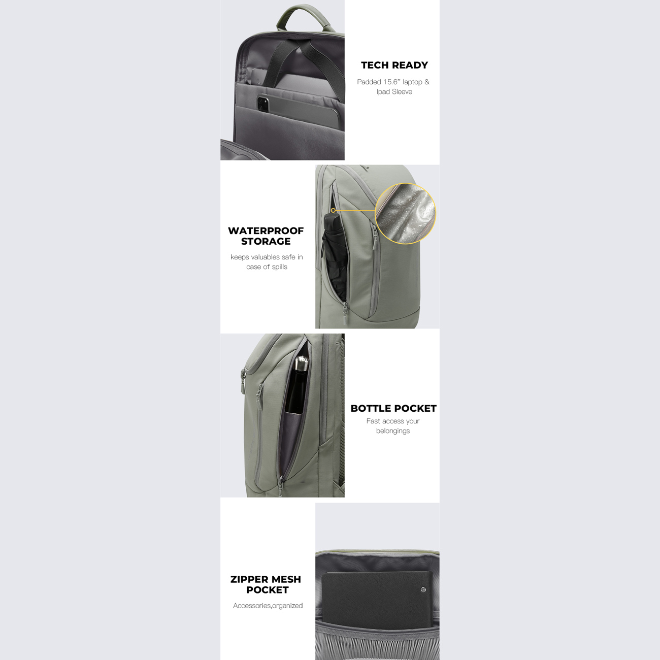 Bange BG-2517-1 backpack, 15.6" laptop, waterproof, organized, travel-ready